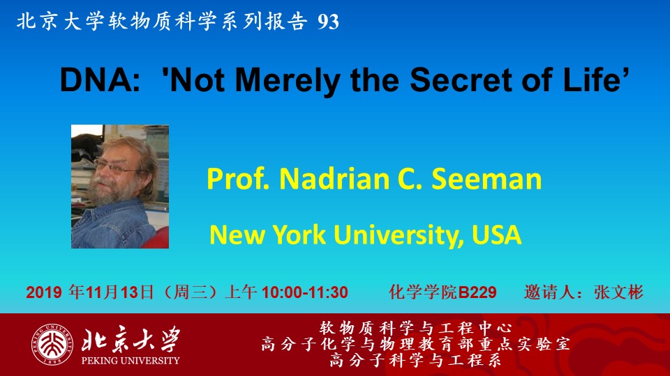 【北京大学软物质科学系列报告 93】DNA: 'Not Merely the Secret of Life’