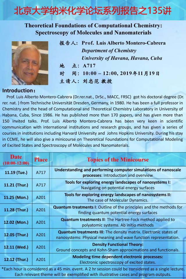 【北京大学纳米化学论坛系列报告之135讲】Theoretical Foundations of Computational Chemistry:Spectroscopy of Molecules and Nanomaterials
