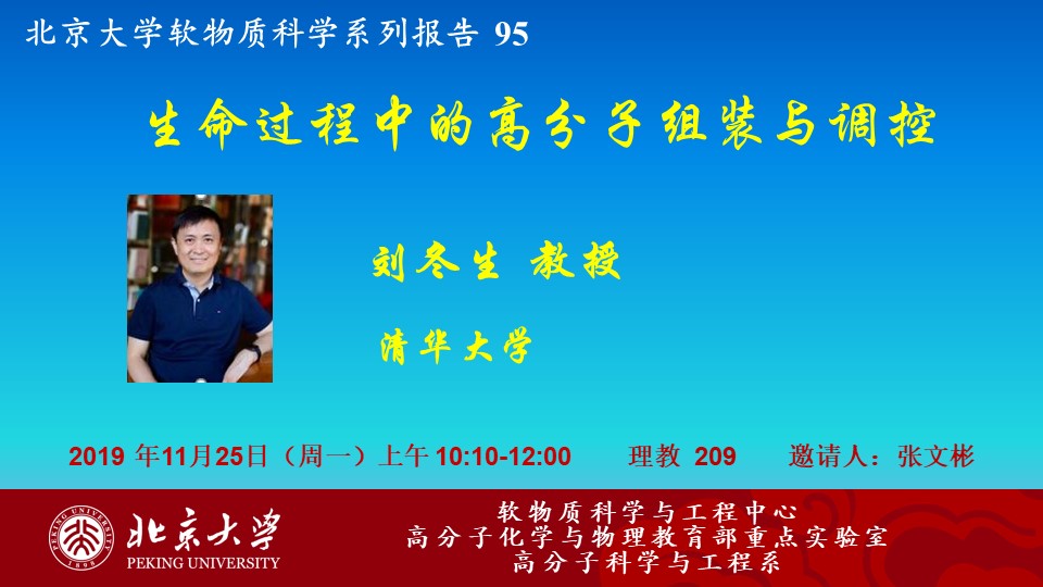 【北京大学软物质科学系列报告 95】生命过程中的高分子组装与调控