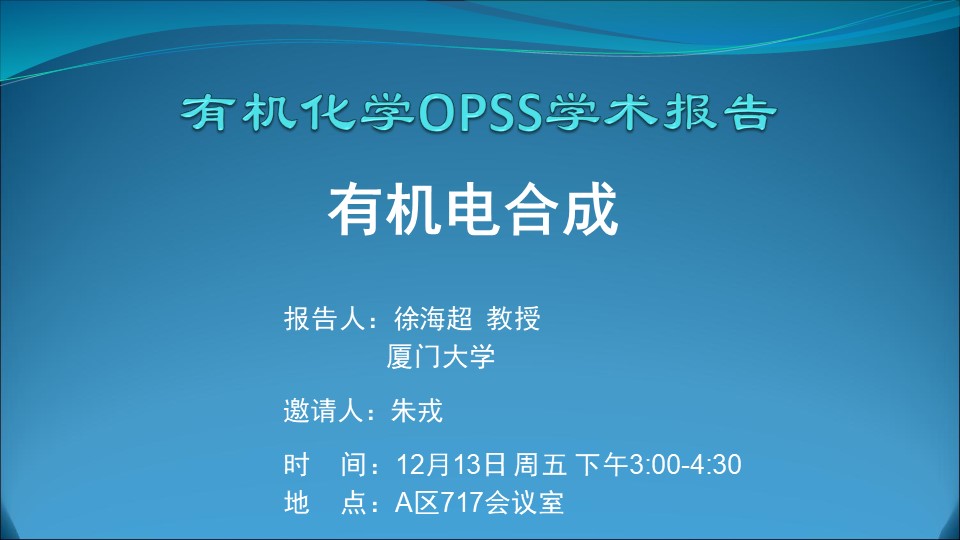 【有机化学OPSS学术报告】有机电合成