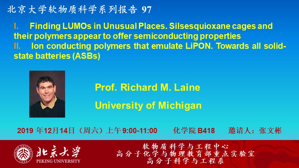 【北京大学软物质科学系列报告 97】Finding LUMOs in Unusual Places. Silsesquioxane cages and their polymers appear to offer semiconducting properties