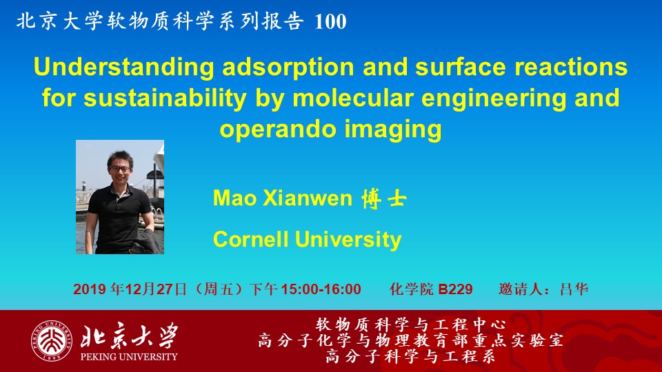 【北京大学软物质科学系列报告 100】Understanding adsorption and surface reactions for sustainability by molecular engineering and operando imaging