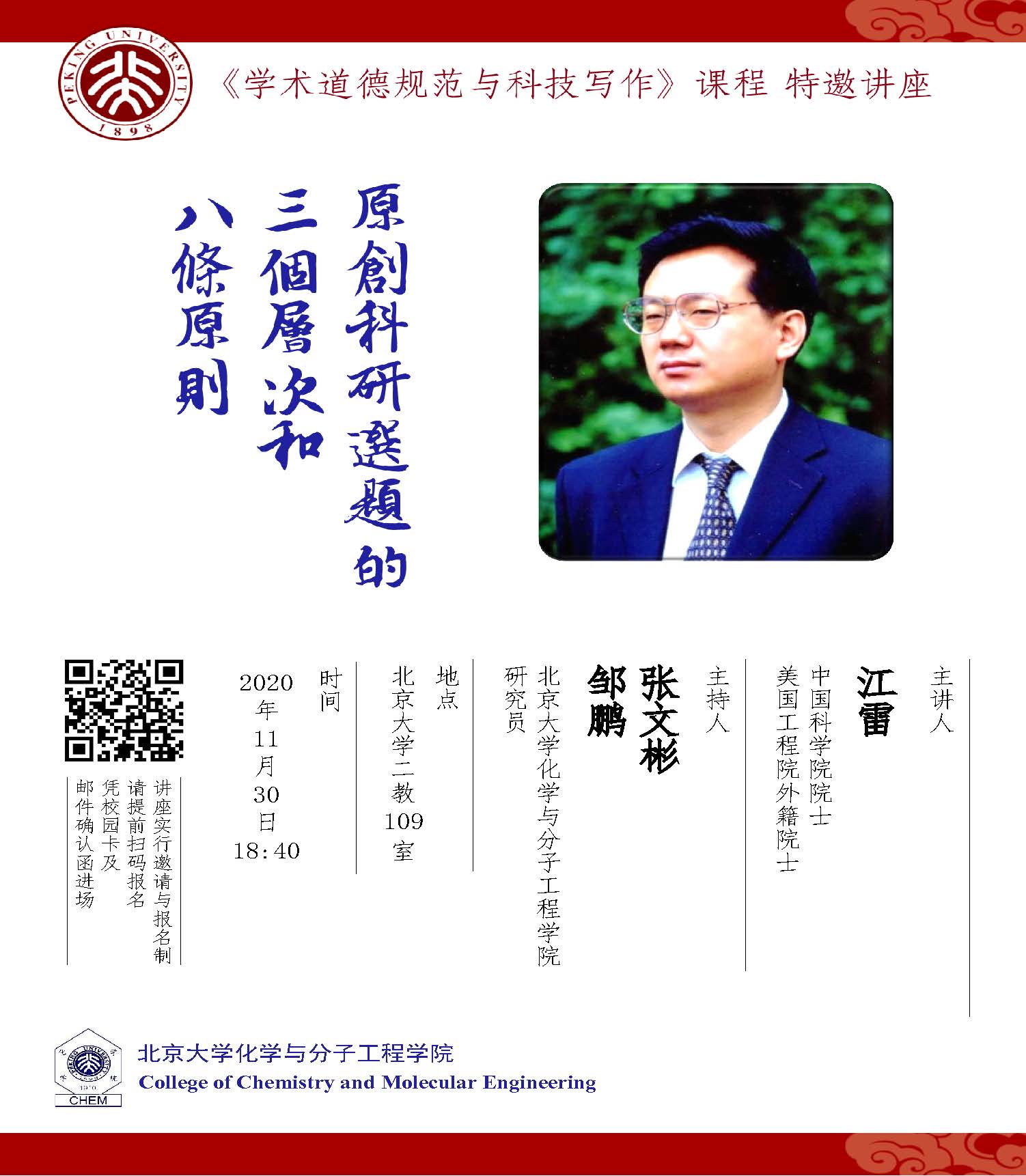 《学术道德规范与科技写作》课程特邀讲座——原创科研选题的三个层次和八条原则