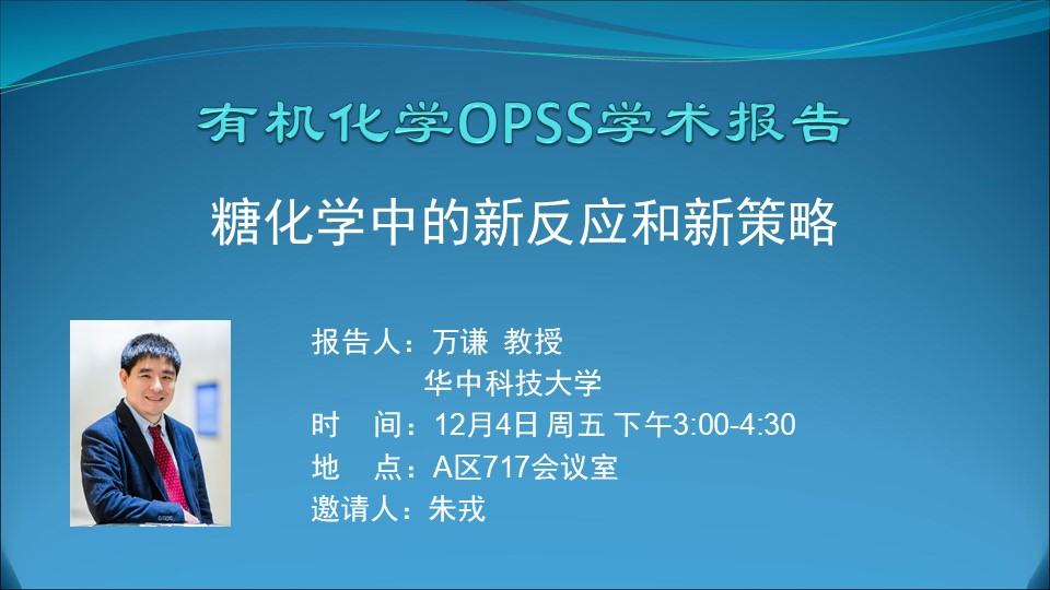 【有机化学OPSS学术报告】糖化学中的新反应和新策略