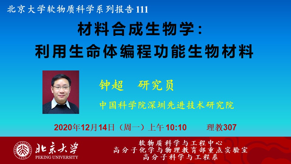 【北京大学软物质科学系列报告 111】材料合成生物学: 利用生命体编程功能生物材料