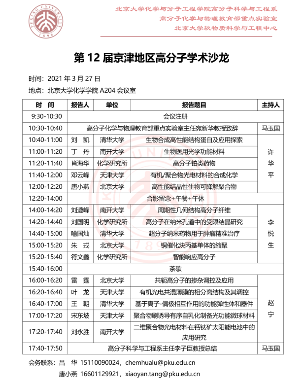 第12届京津地区高分子学术沙龙