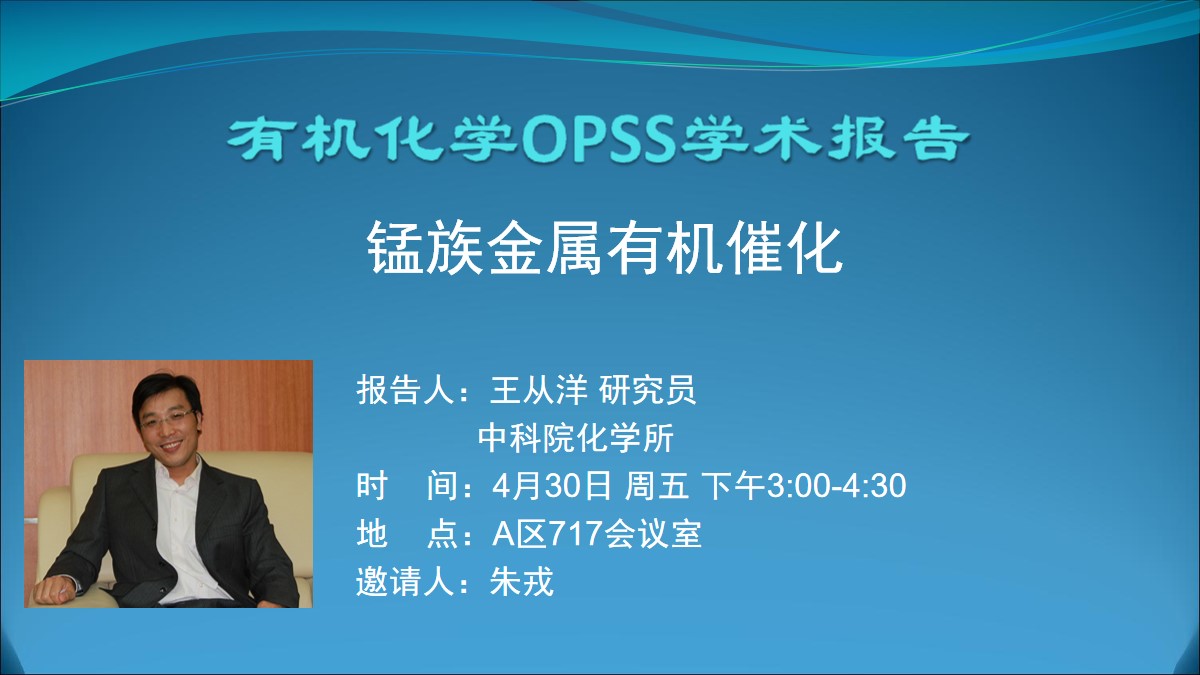 【有机化学OPSS学术报告】锰族金属有机催化
