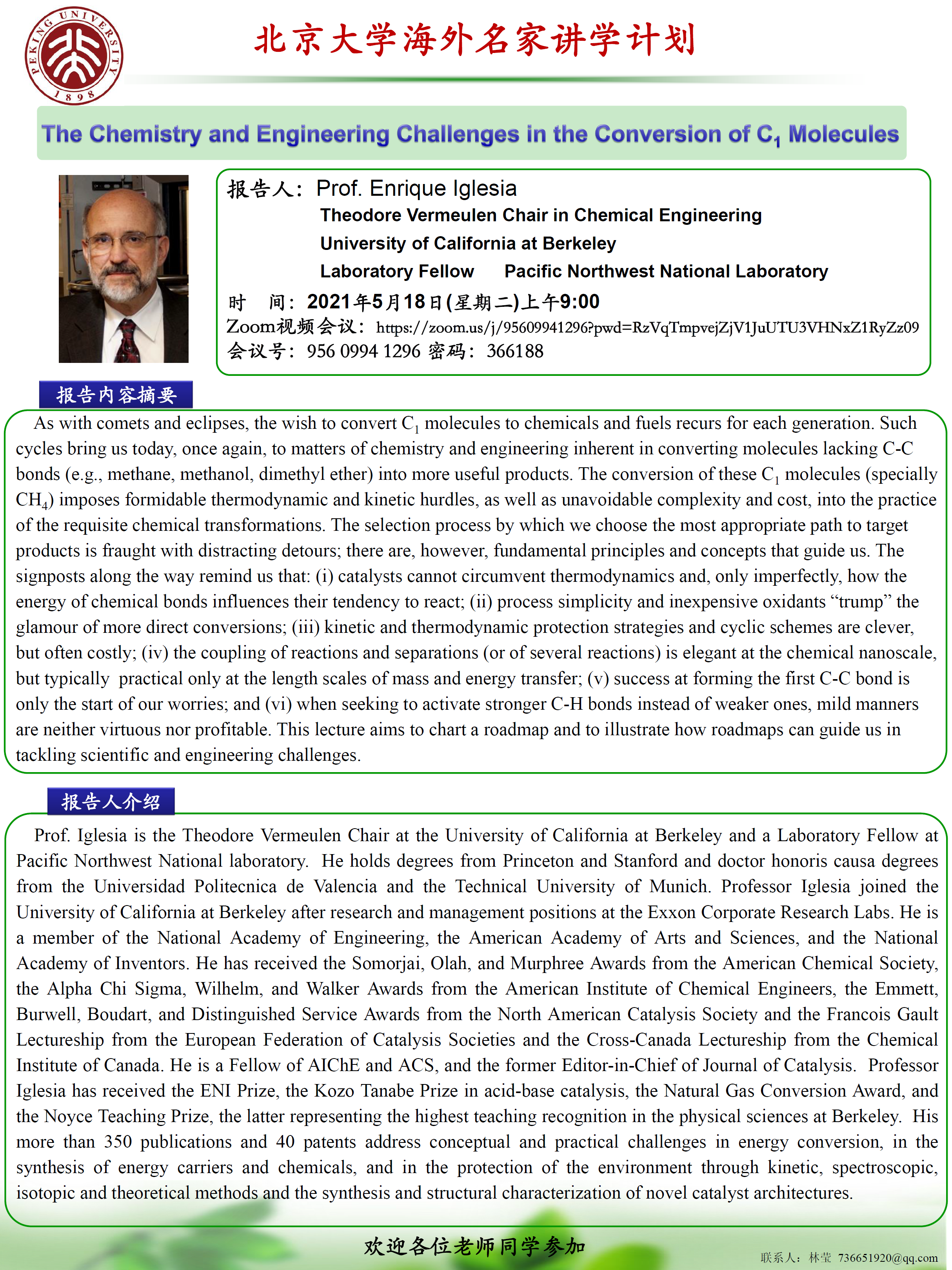 报告人:Enrique Igleisa 教授 报告时间:2021年5月18日上午9:00 Zoom视频会议:https://zoom.us/j/95609941296?pwd=RzVqTmpvejZjV1JuUTU3VHNxZ1RyZz09 会议号:956 0994 1296 密码:366188