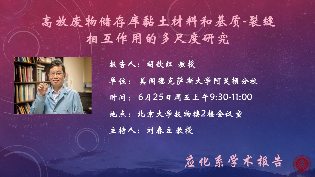 【应化系学术报告】高放废物储存库黏土材料和基质-裂缝相互作用的多尺度研究