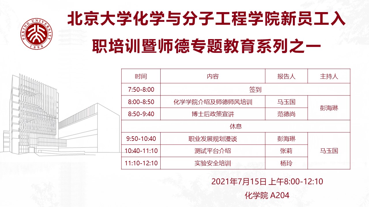 北京大学化学与分子工程学院新员工入职培训 暨师德专题教育系列之一