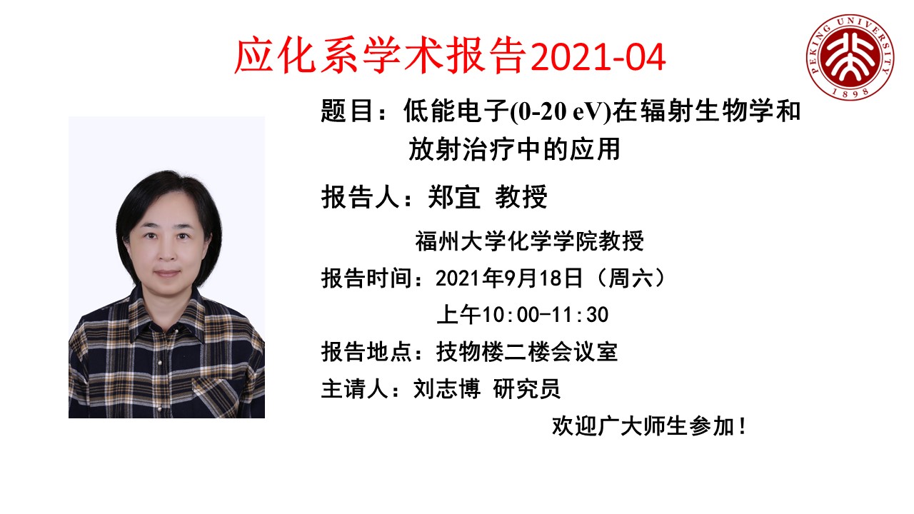 【应化系学术报告2021-04】低能电子(0-20 eV)在辐射生物学和放射治疗中的应用