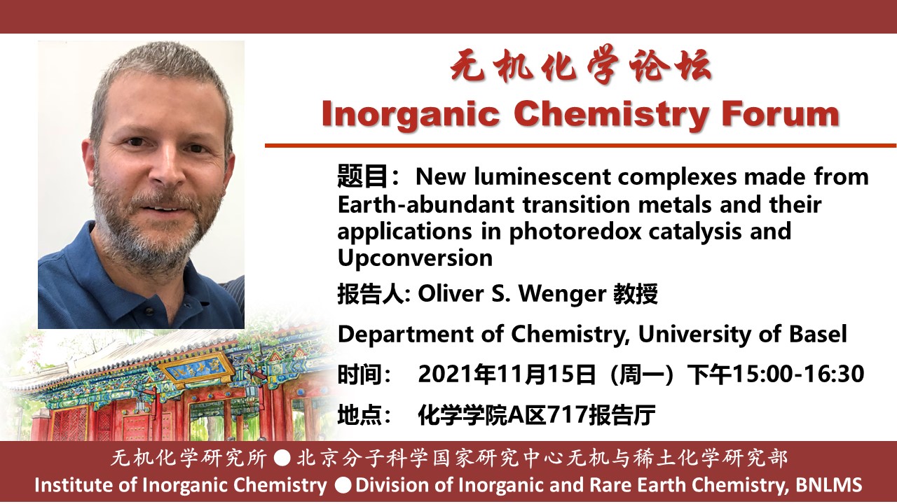 【无机化学论坛】New luminescent complexes made from Earth-abundant transition metals and their applications in photoredox catalysis and Upconversion