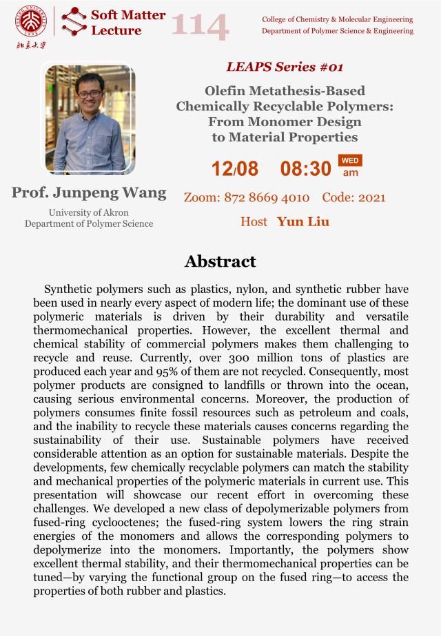 【Soft Matter Lecture 114】Olefin Metathesis-Based Chemically Recyclable Polymers: From Monomer Design to Material Properties
