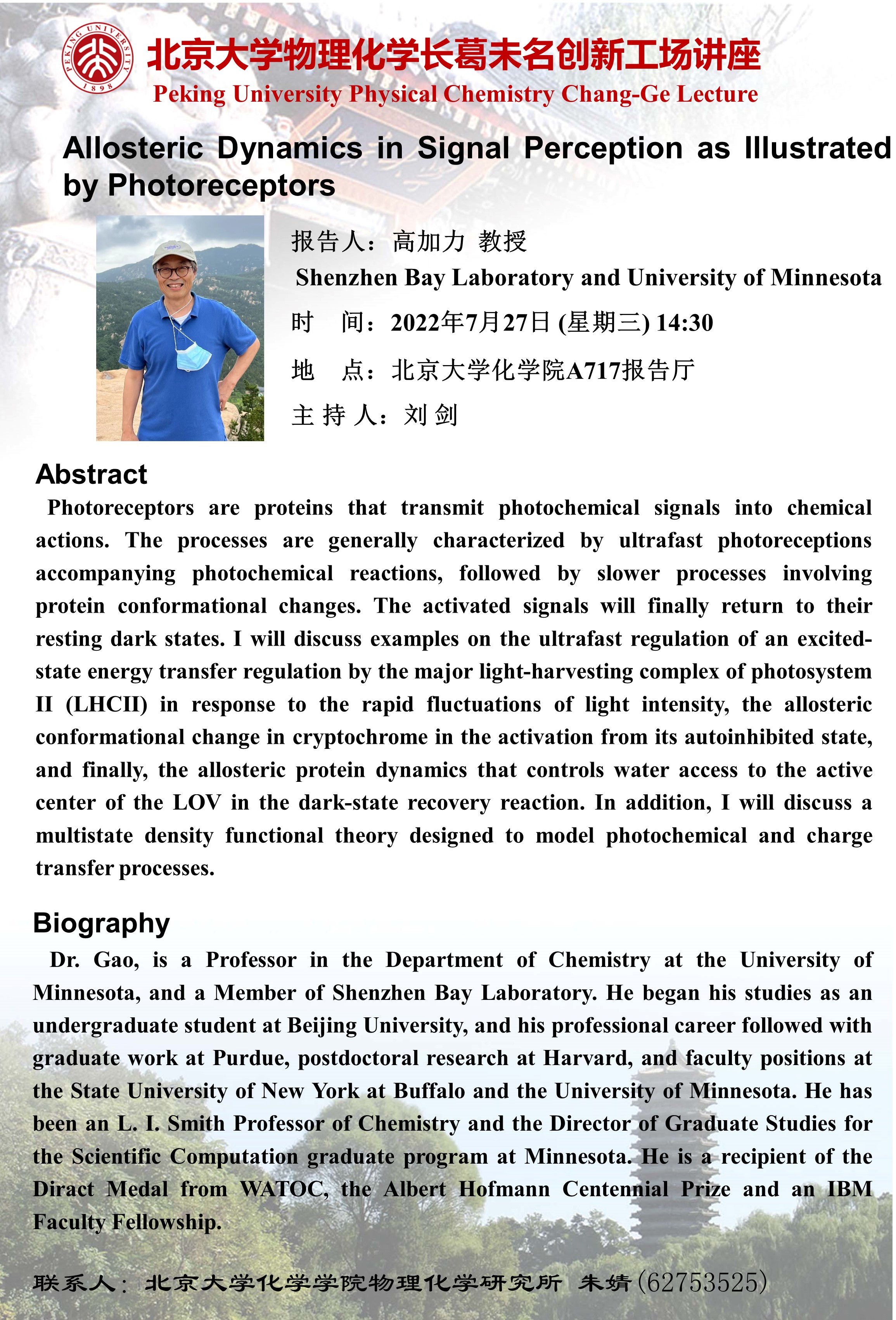 【北京大学物理化学长葛未名创新工场讲座】Allosteric Dynamics in Signal Perception as Illustrated by Photoreceptors