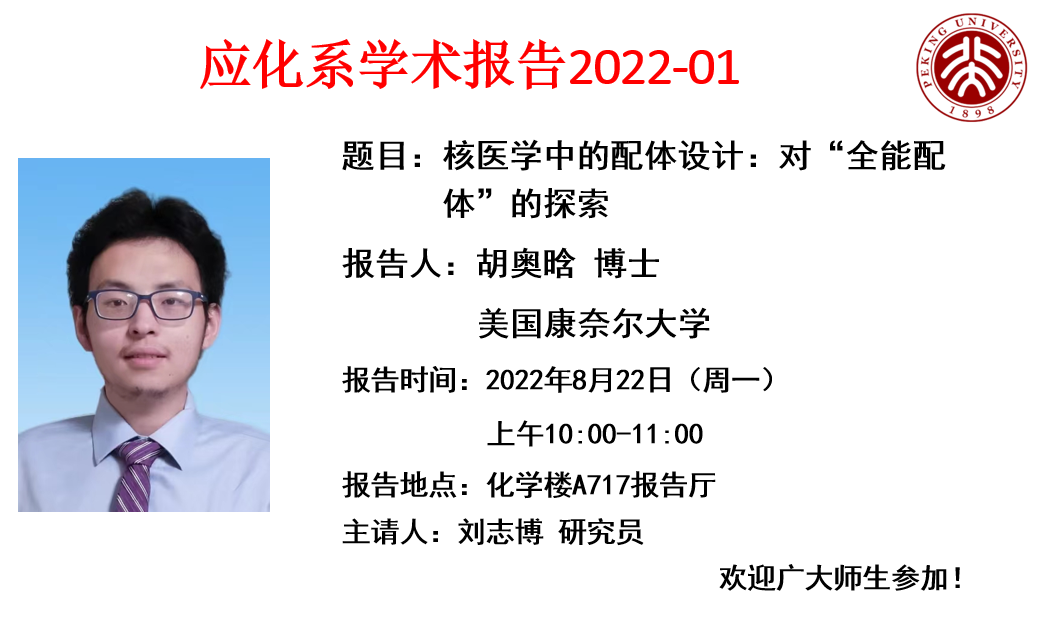 【应化系学术报告】核医学中的配体设计:对“全能配体”的探索