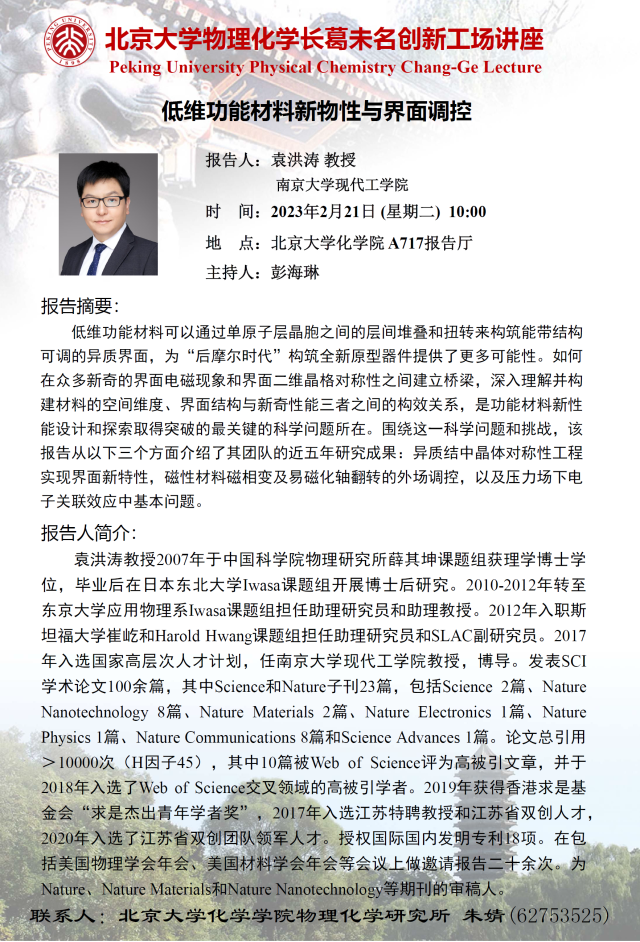 【北京大学物理化学长葛未名创新工场讲座】低维功能材料新物性与界面调控
