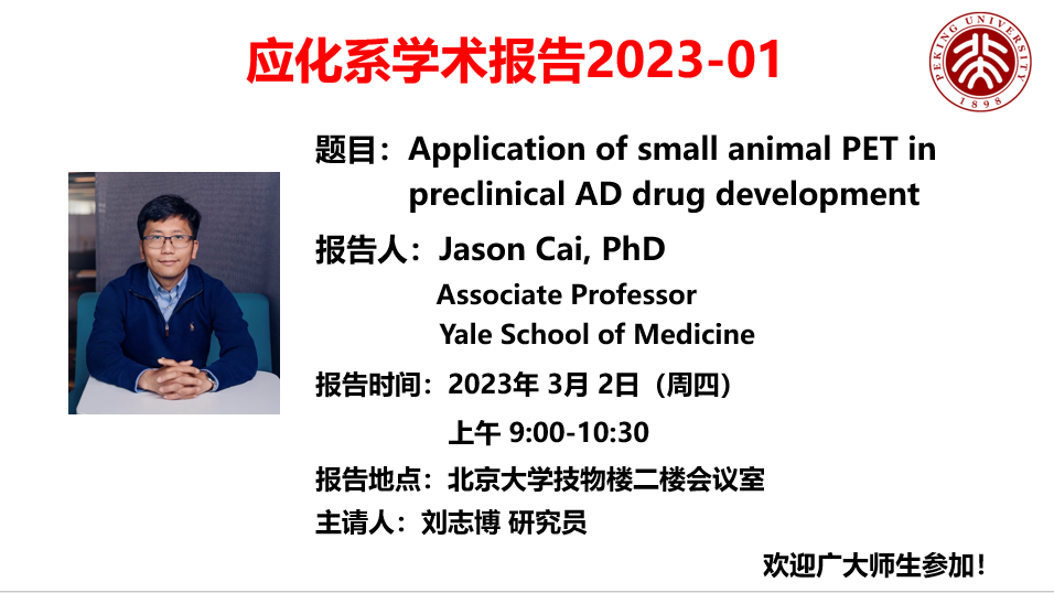 【应化系学术报告】Application of small animal PET in preclinical AD drug development