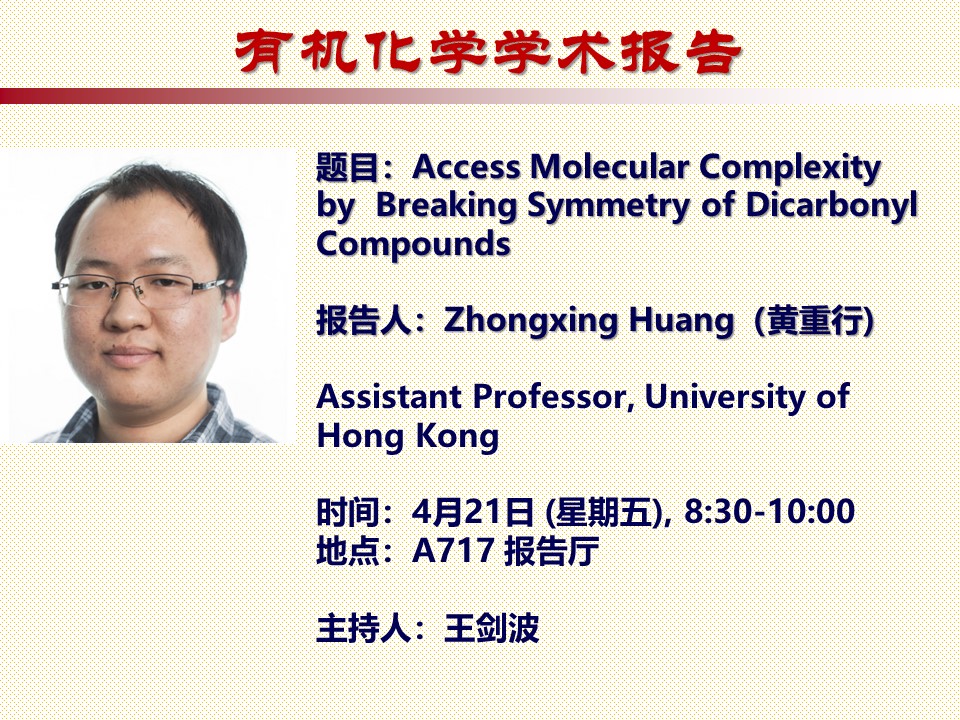 【有机化学学术报告】Access Molecular Complexity by Breaking Symmetry of Dicarbonyl Compounds