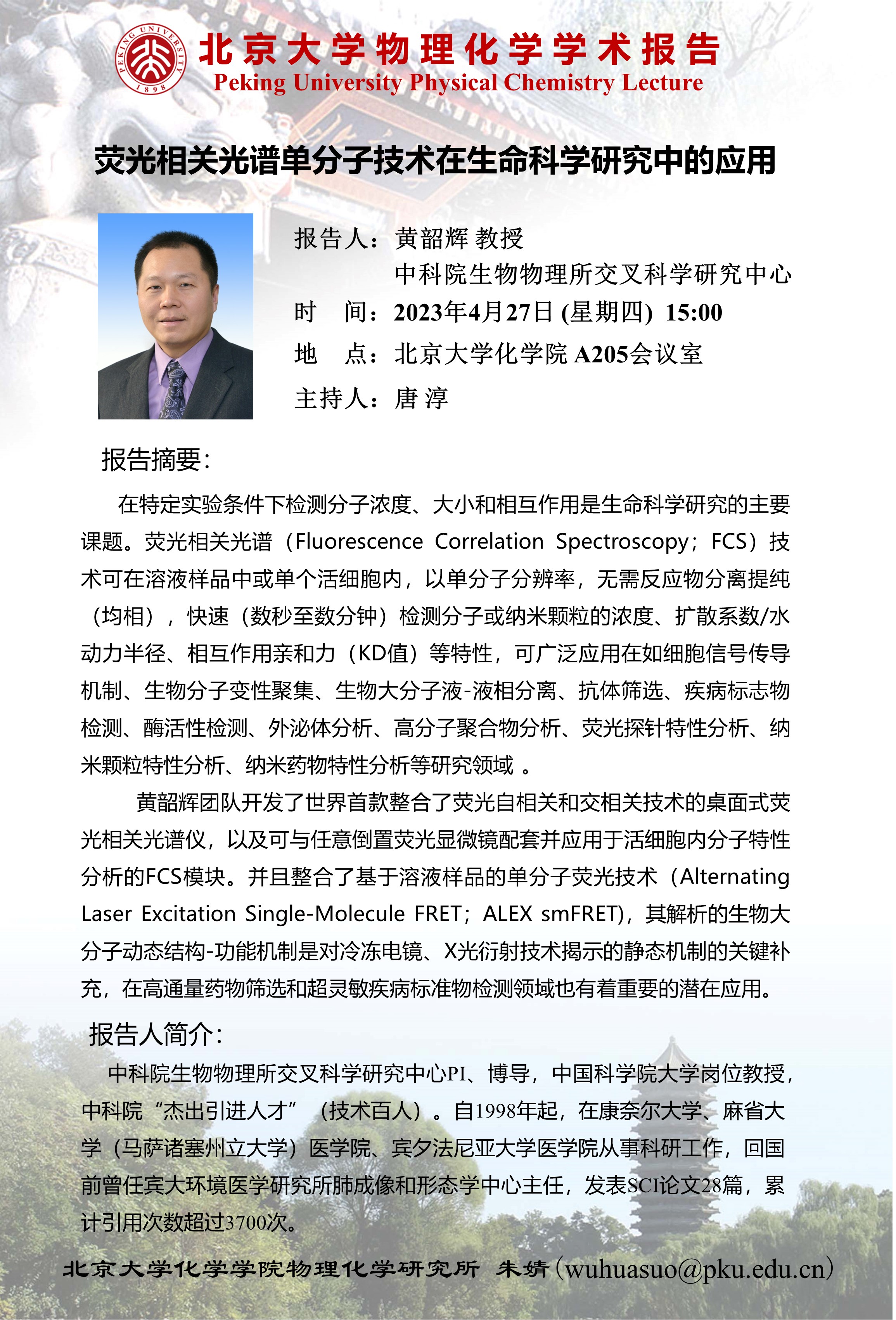 【北京大学物理化学学术报告】荧光相关光谱单分子技术在生命科学研究中的应用