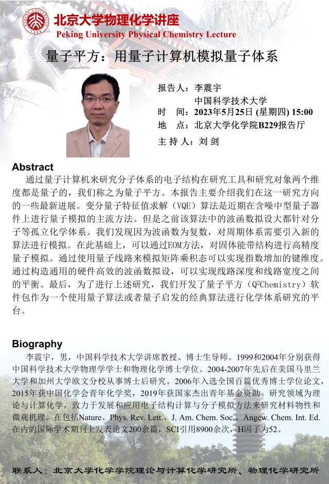 【北京大学物理化学讲座】量子平方:用量子计算机模拟量子体系
