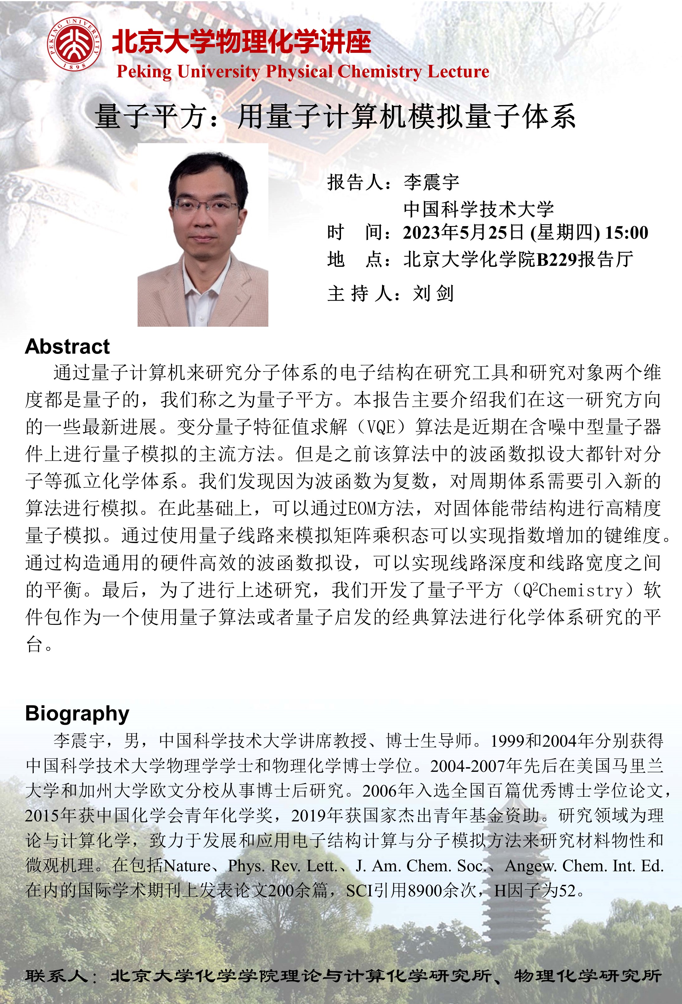 【北京大学物理化学讲座】量子平方:用量子计算机模拟量子体系
