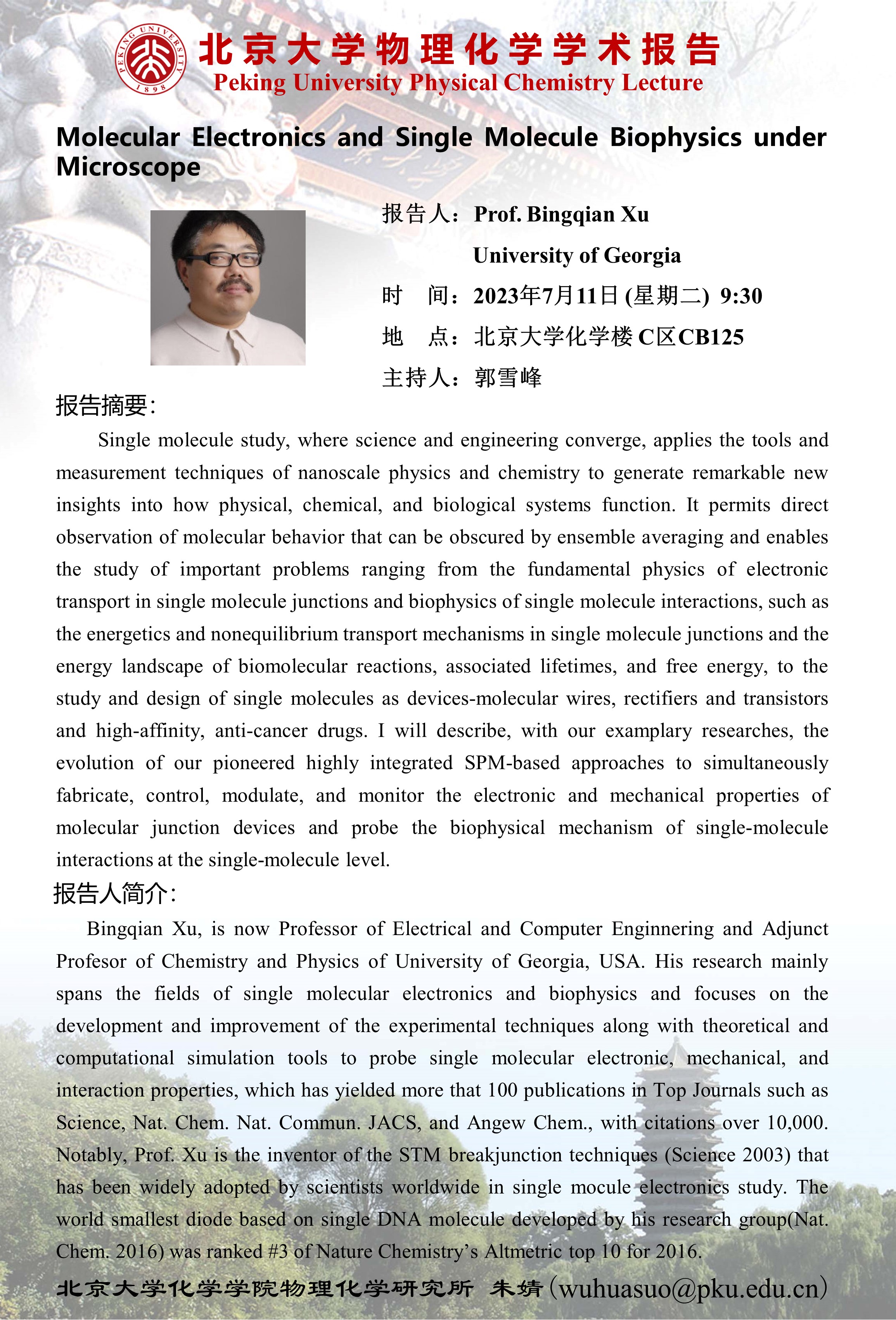 【北京大学物理化学学术报告】Molecular Electronics and Single Molecule Biophysics under Microscope