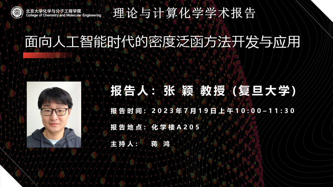 报告人简介:2003年本科毕业于厦门大学,2010年和2011年分别于厦门大学化学系和瑞典皇家理工学院获得双博士学位。2012年依托德国马普学会Fritz-Haber研究所理论系开展博士后工作,并于2014年独立创建课题组任课题组长。2018年3月回国,就职复旦大学化学系,任研究员。研究领域为理论与计算化学,在电子结构计算方法和程序的开发与应用方面做出系列原创性的工作。主持海外高层次人才引进项目,基金委面上项目、国家杰出青年科学基金项目等;获得中国化学会唐敖庆理论化学青年奖(2018),教育部自然科学一等奖(2019,排名第2)等学术奖励。