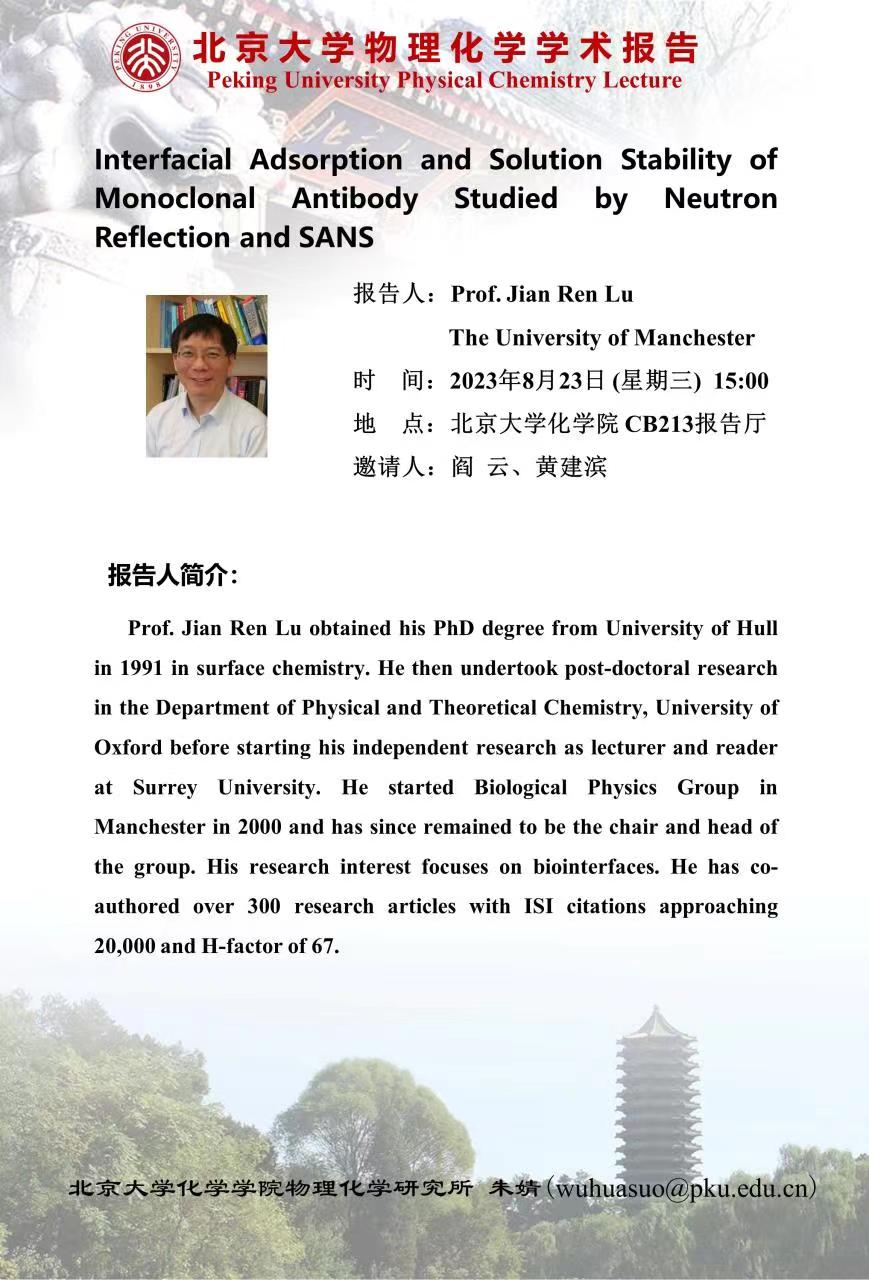 【北京大学物理化学学术报告】Interfacial Adsorption and Solution Stability of Monoclonal Antibody Studied by Neutron Reflection and SANS