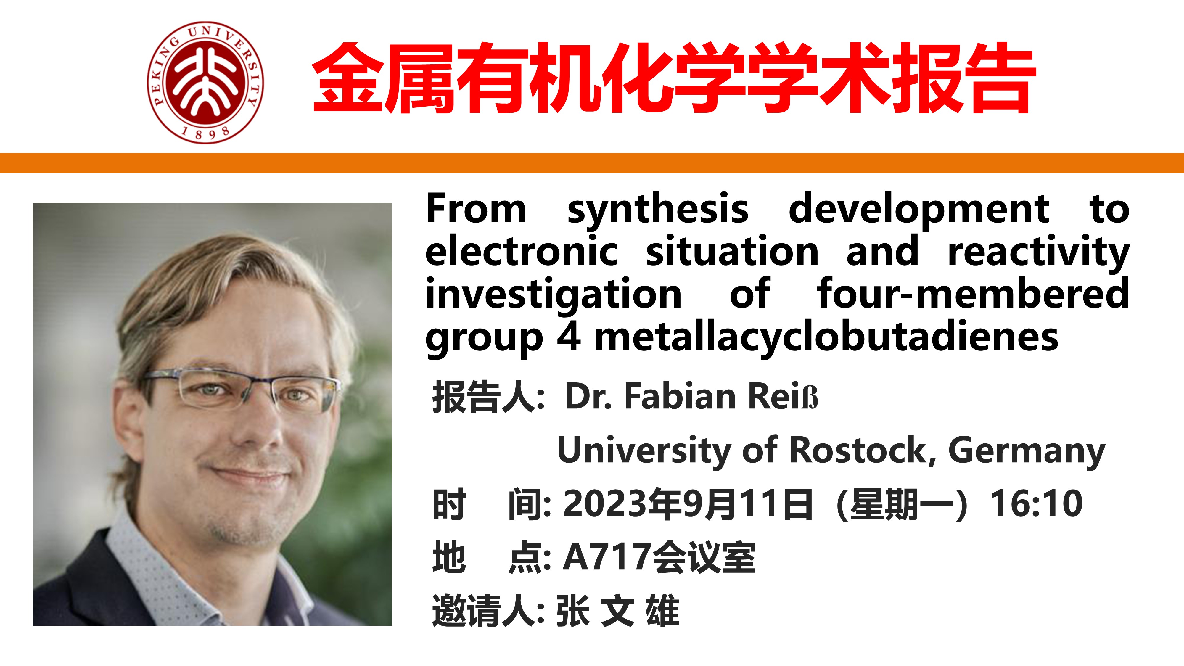 【金属有机化学学术报告】From synthesis development to electronic situation and reactivity investigation of four-membered group 4 metallacyclobutadienes