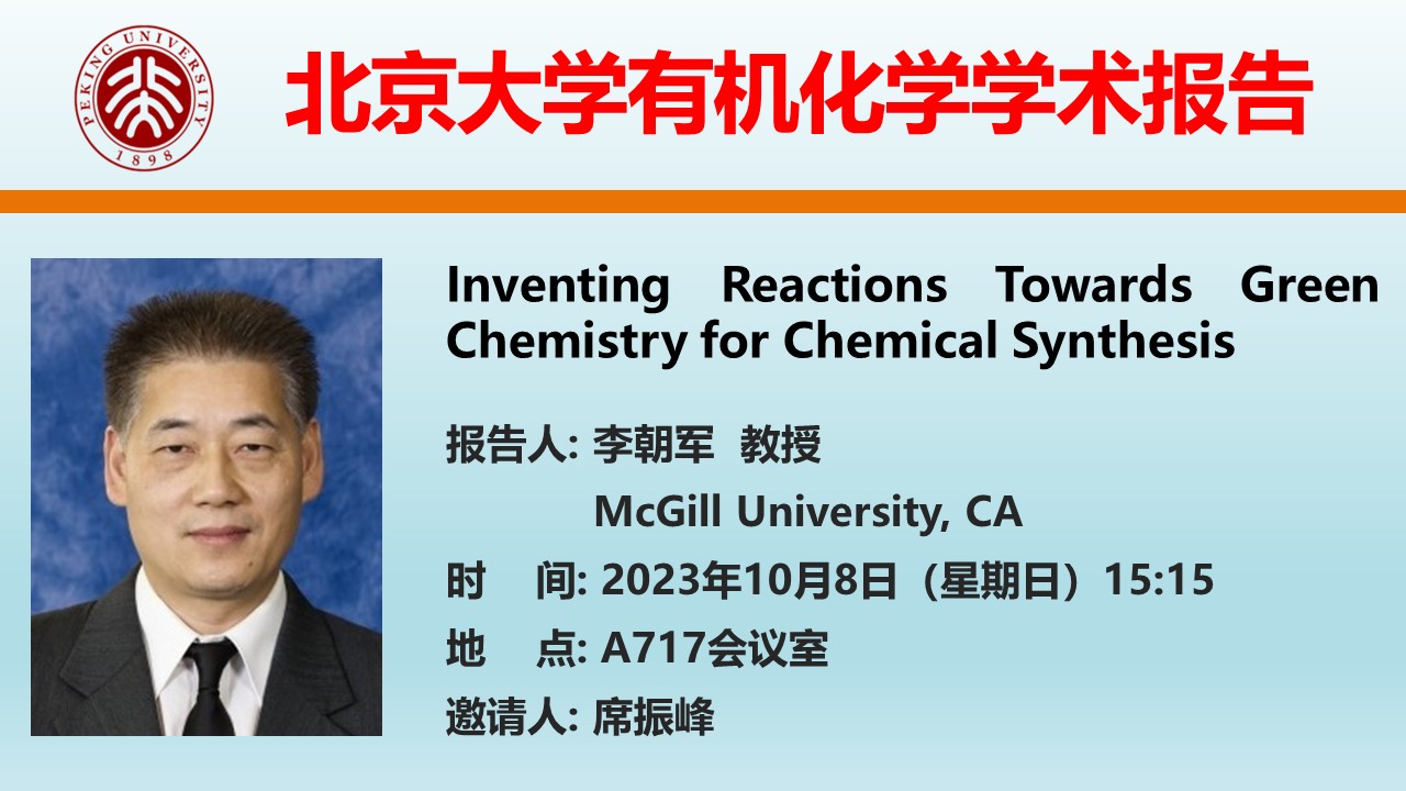 【有机化学学术报告】Inventing Reactions Towards Green Chemistry for Chemical Synthesis