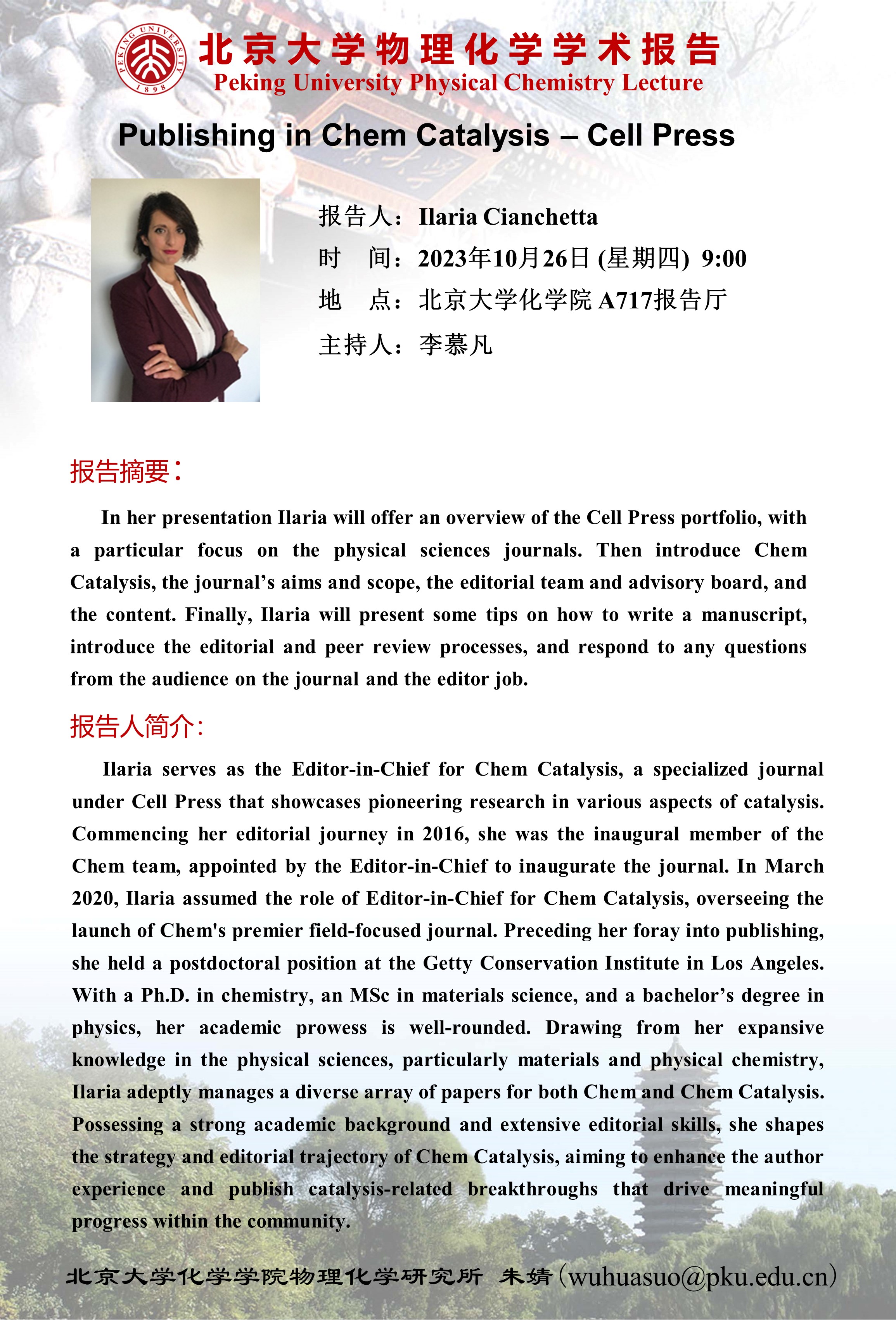 【北京大学物理化学学术报告】Publishing in Chem Catalysis – Cell Press