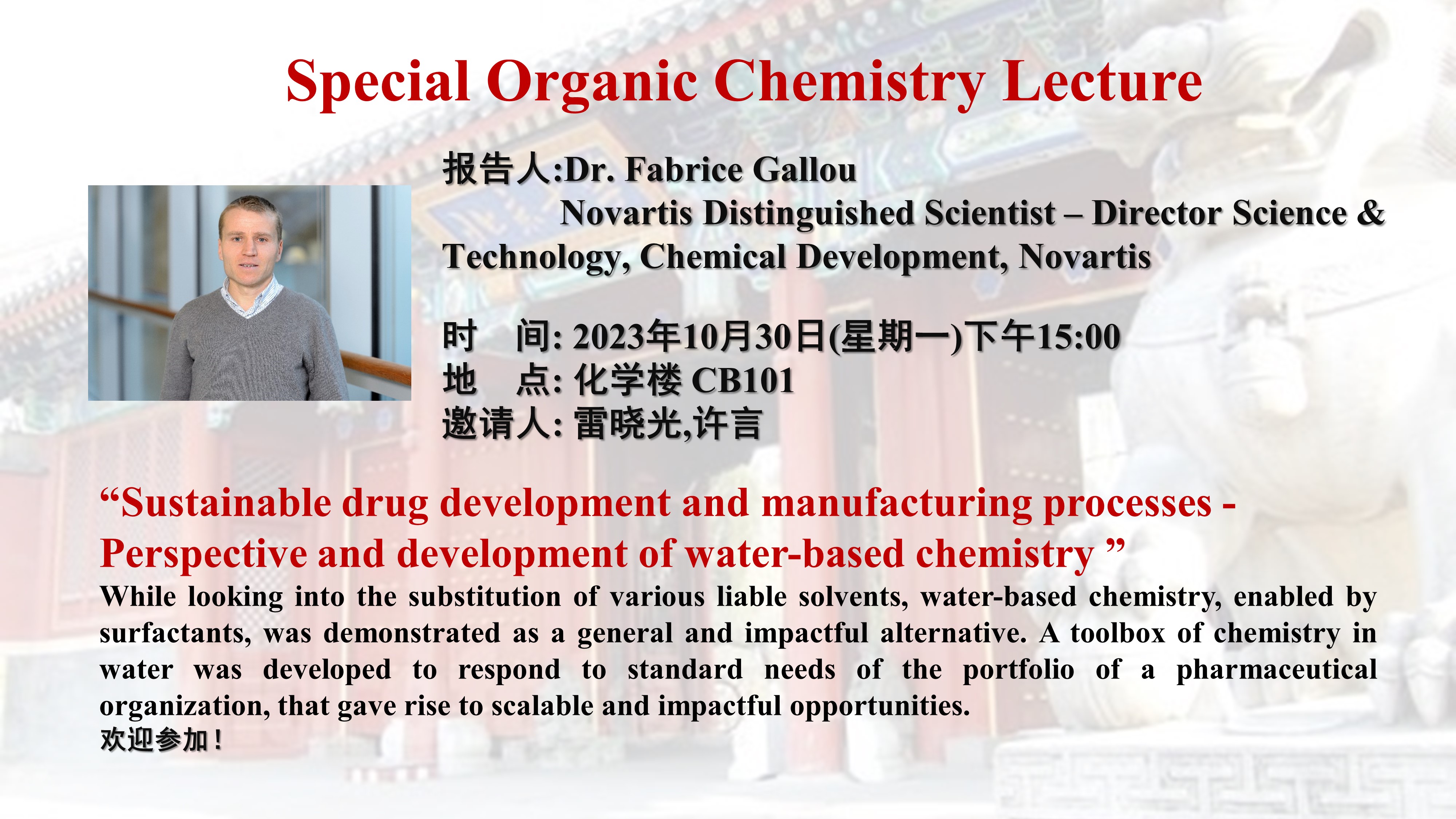 【Special Organic Chemistry Lecture】Sustainable drug development and manufacturing processes - Perspective and development of water-based chemistry