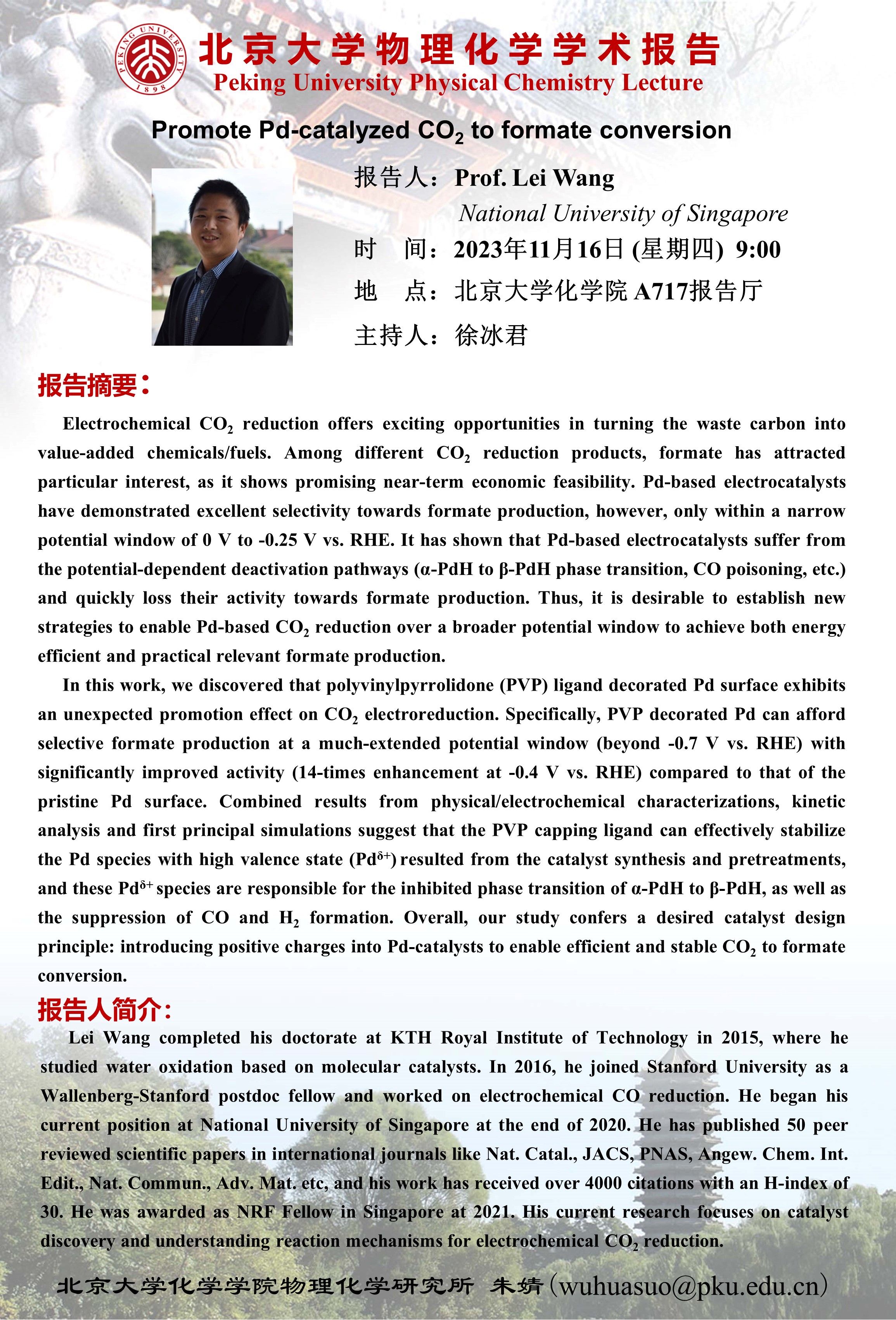 【北京大学物理化学学术报告】Promote Pd-catalyzed CO2 to formate conversion