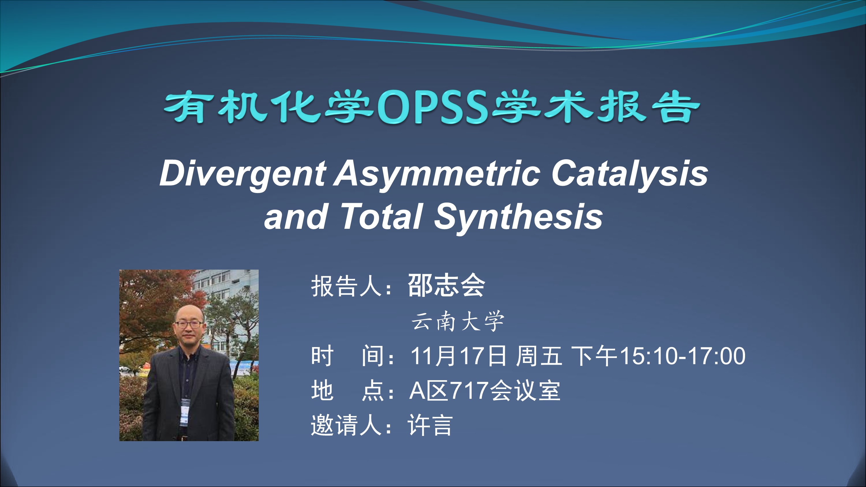 【有机化学OPSS学术报告】Divergent Asymmetric Catalysis and Total Synthesis