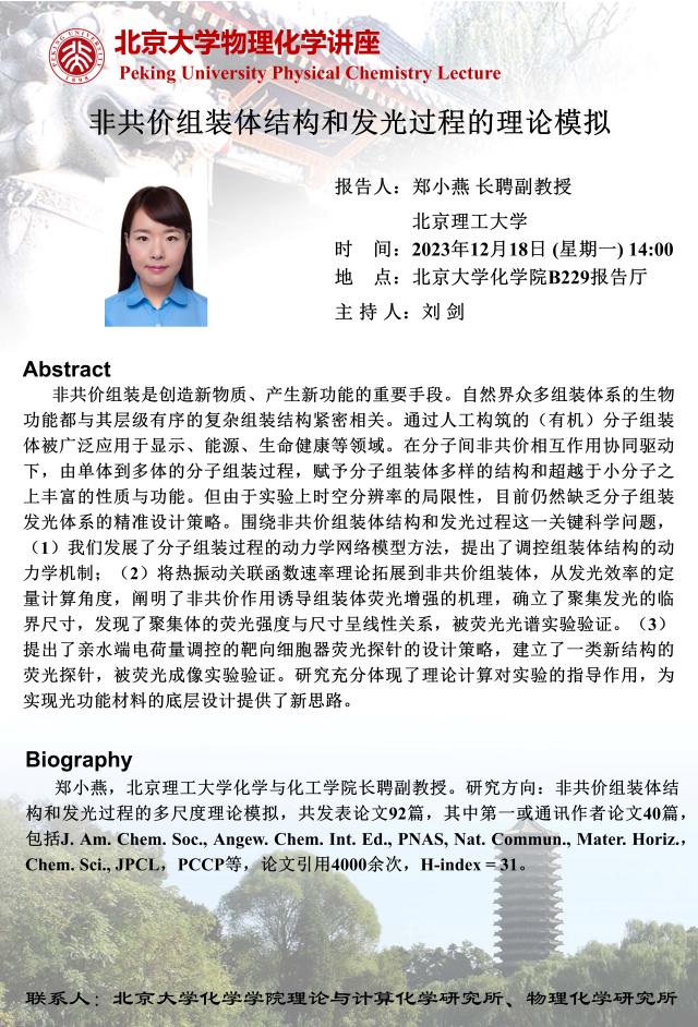 【北京大学物理化学讲座】非共价组装体结构和发光过程的理论模拟