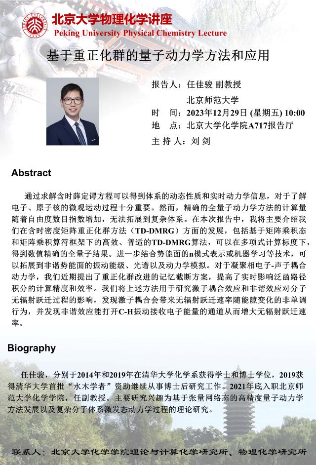 【北京大学物理化学讲座】基于重正化群的量子动力学方法和应用