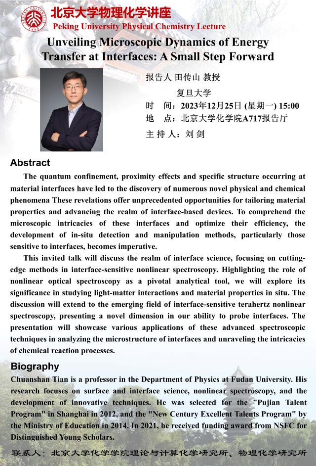 【北京大学物理化学讲座】Unveiling Microscopic Dynamics of Energy Transfer at Interfaces: A Small Step Forward