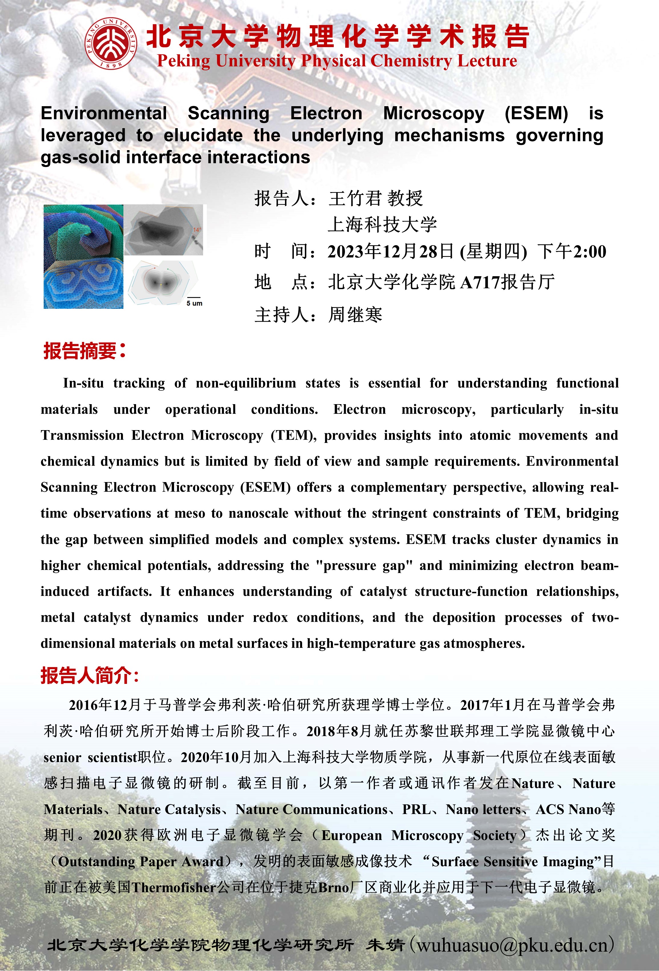 【北京大学物理化学学术报告】Environmental Scanning Electron Microscopy (ESEM) is leveraged to elucidate the underlying mechanisms governing gas-solid interface interactions