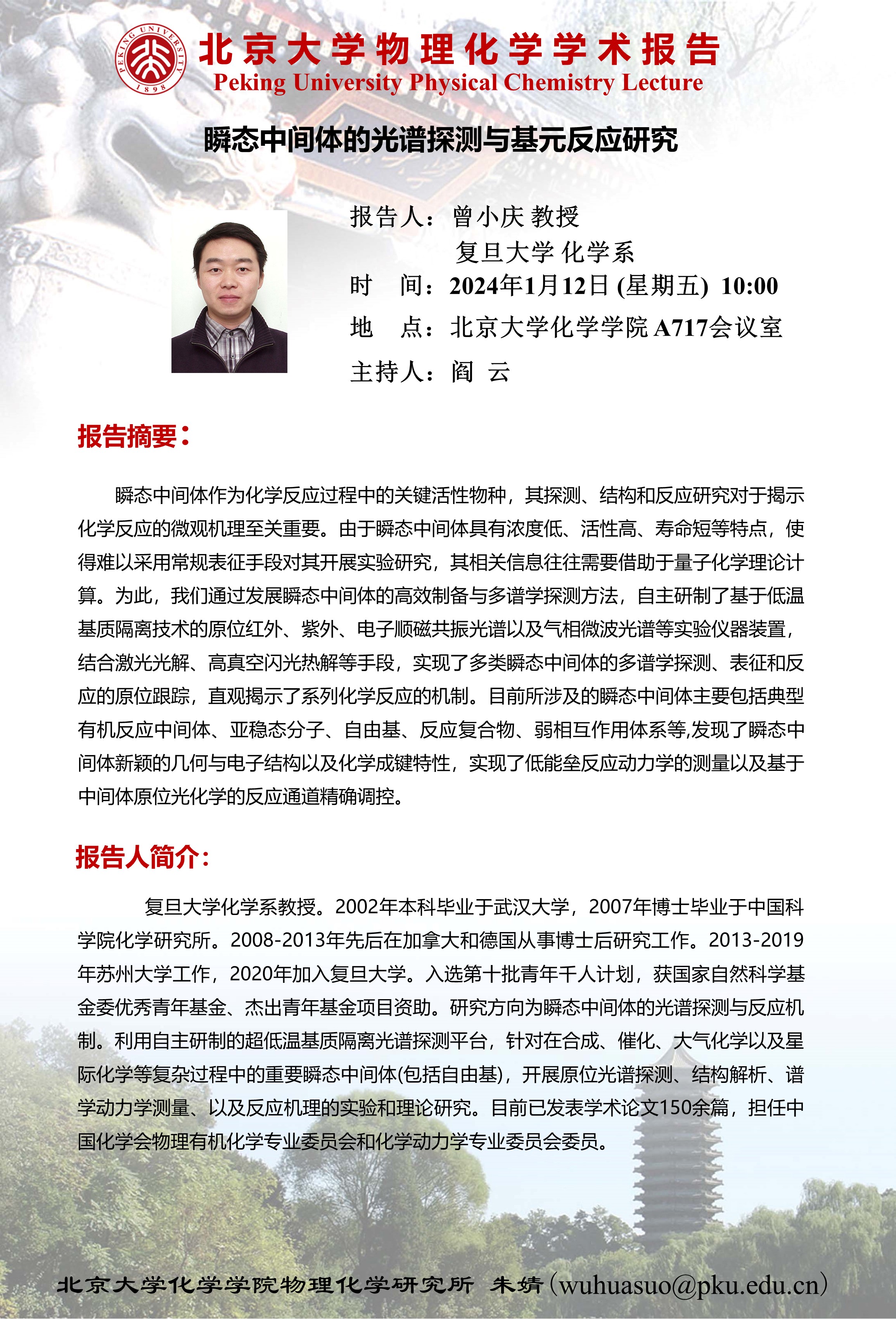 【北京大学物理化学学术报告】瞬态中间体的光谱探测与基元反应研究