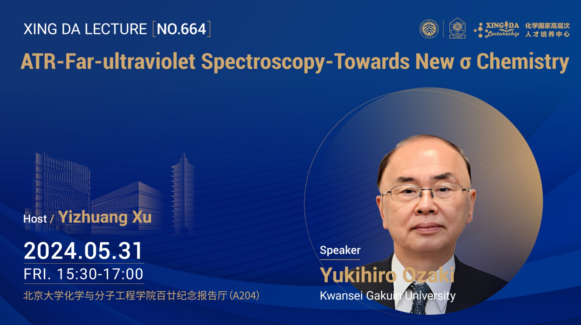 尾崎幸洋教授是国际知名光谱学家,研究涉及远紫外,表面等离子共振、近红外、红外、拉曼光谱、量化计算、二维相关谱及化学计量学等领域,他在Angew. Chem. Int. Ed., Chem. Sci. Chem. Rev., Chem. Soc. Rev等顶级国际学术期刊上发表论文、综述上千篇,论文被引用3,4000篇次,H-指数为85。出版专著17本,他获得获得中华人民共和国政府颁发的友谊奖并得到了李强总理的接见等15项国际奖。在日本获得科学技术最高奖等10项国内奖。