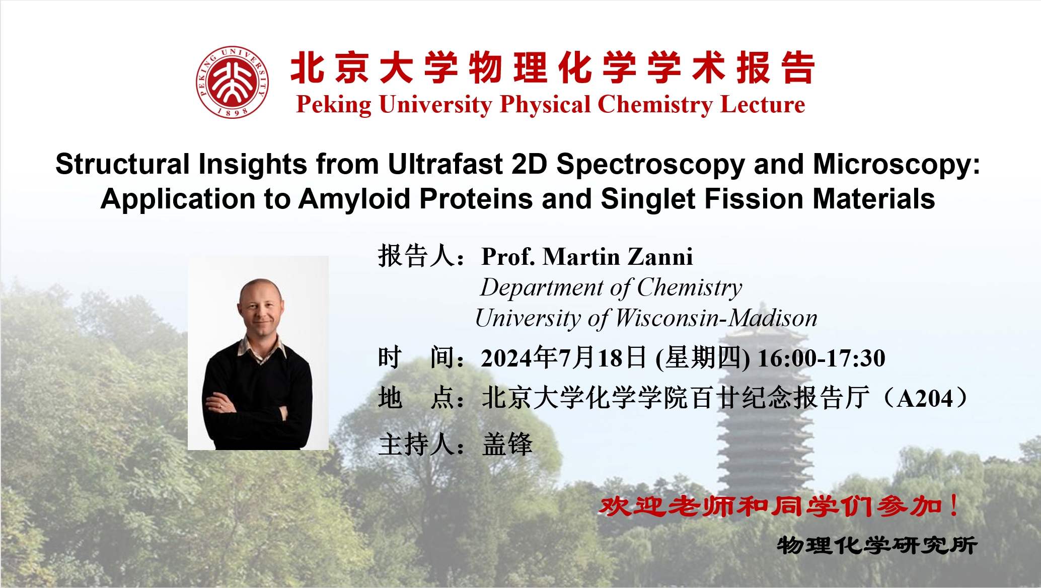 Martin T. Zanni is the Meloche-Bascom Professor of Chemistry at the University of Wisconsin-Madison. He received his PhD from the University of California-Berkeley, working with Dan Neumark, and was an NIH Postdoctoral Fellow at the University of Pennsylvania with Robin Hochstrasser. He is one of the early pioneers of 2D IR spectroscopy and has made many technological innovations that has broadened the capabilities and scope for a wide range of multidimensional spectroscopies and microscopies. He utilizes these new techniques to study topics in biophysics, chemical physics, photovoltaics, and surfaces. He has received many national and international accolades for his research. Notably, he is the only person to have received the ACS Nobel Laureate Signature Award as both a student and a mentor and the first person to receive the Craver, Coblentz, and Lippincott Awards. He founded PhaseTech Spectroscopy Inc., which is the first company to commercialize 2D IR and 2D Electronic spectroscopies.