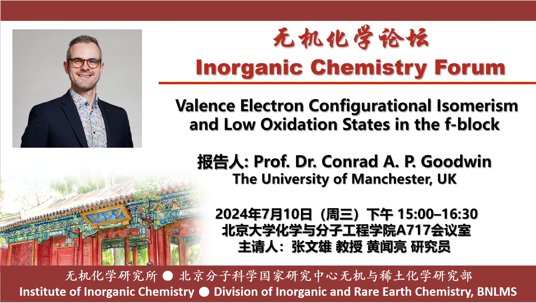 Dr Conrad Goodwin is a Royal Society University Research Fellow at the University of Manchester (UK). He obtained his PhD with Prof. David P. Mills at The University of Manchester (2017), which was followed by a short postdoctoral fellowship in the same group and worked on record-breaking single-molecule magnets. In 2018, he moved to Los Alamos National Laboratory (USA) where he held a J. Robert Oppenheimer Distinguished Postdoctoral Fellowship and worked on the chemistry of transuranium elements from neptunium to californium. The Goodwin Group was established in 2021, and focuses on the coordination and redox chemistry of rare earth and actinide elements.