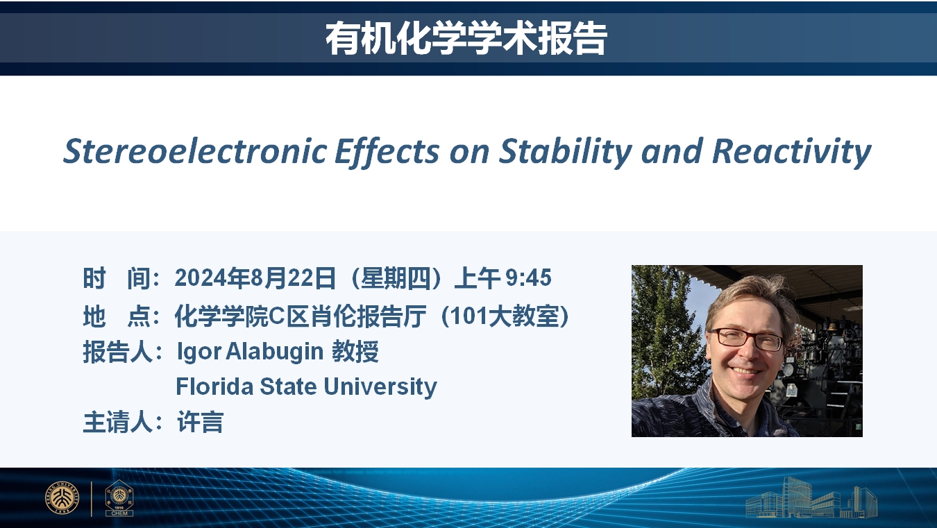 【北京大学有机化学学术报告】Stereoelectronic Effects on Stability and Reactivity