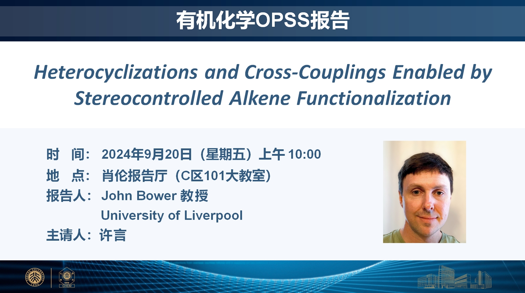 【有机化学OPSS学术报告】Heterocyclizations and Cross-Couplings Enabled by Stereocontrolled Alkene Functionalization