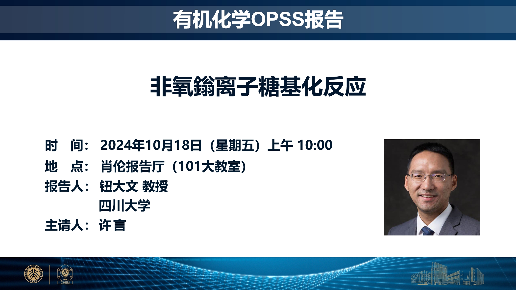 钮大文教授,四川大学生物治疗全国重点实验室/化学工程学院教授、博导。2006年在东南大学获得本科学位,2013年获美国明尼苏达大学博士学位,2013~2015年在麻省理工学院进行博士后研究,2015年加入四川大学任教。从事糖类合成与功能研究,为克服糖类合成中长期面临的选择性控制难题建立了系列方案,实现了对复杂生物分子直接无保护基糖基化,开发了可用于蛋白质直接选择性糖基化的化学方法,并将之应用于抗体偶联药物开发中。迄今在Science, Nature, Nature Chem., Nature Catal., Nature Synth., JACS, Angew., Acc. Chem. Res.等权威期刊上发表研究论文30余篇。钮大文教授获基金委杰青项目资助,入选中组部“海外高层次人才”、四川省千人计划、四川省学术与技术带头人。曾获国家自然科学基金优秀青年基金(2019)、霍英东青年教师基金 (2019)等资助,并获得惠永正糖科学奖(2023),中国化学会青年化学奖(2021),中国化学会糖化学青年学者奖(2023)等多个学术奖励。