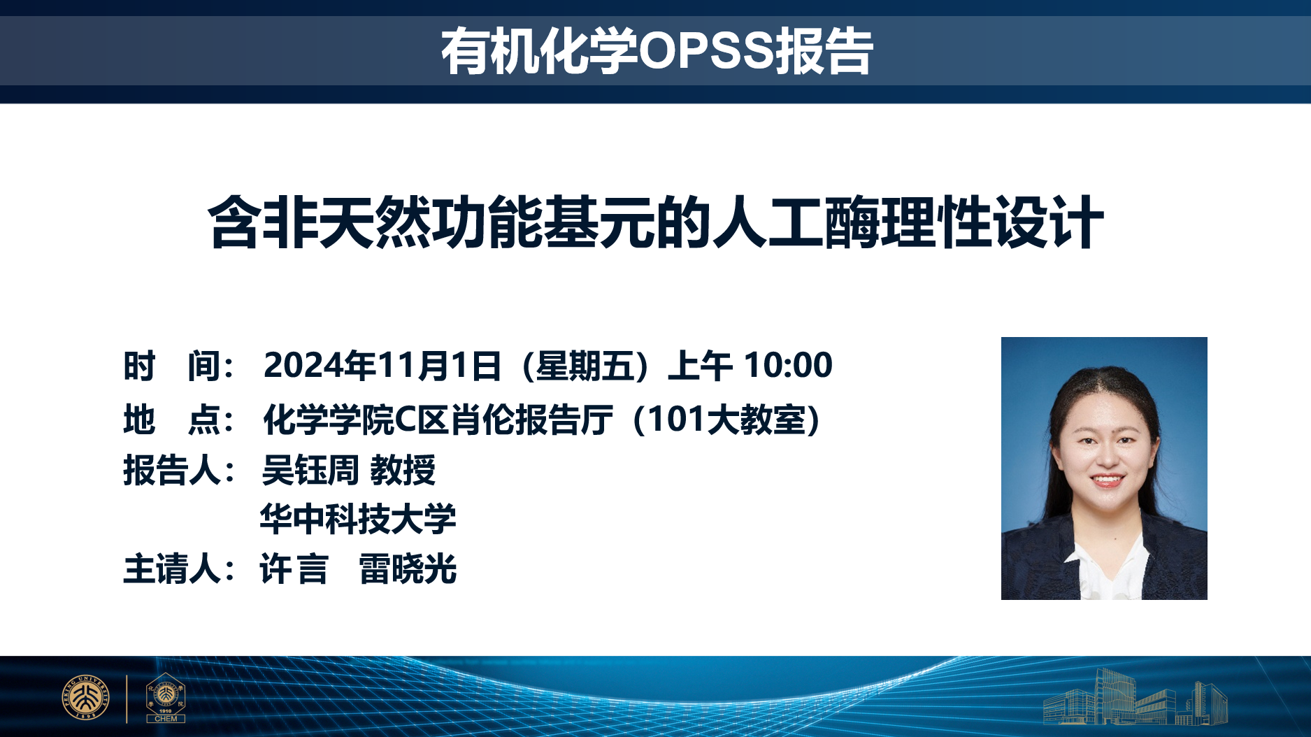 华中科技大学化学与化工学院教授、博导,国家级青年人才。现任化学与化工学院院长助理,无机与化学生物学研究所所长,生物无机化学与药物湖北省重点实验室主任,生物医用与防护材料湖北省工程研究中心副主任。本科毕业于浙江大学,于新加坡国立大学和德国乌尔姆大学分别获得硕士和博士学位。2013-2016年先后在德国乌尔姆大学和德国马普高分子所担任课题组长。2016年起担任华中科技大学教授。主要从事新酶设计及合成生物新材料的研究,在Nature,J. Am. Chem. Soc., Angew. Chem. Int. Ed.等期刊已发表科研论文100余篇,授权中国发明专利10余项,受邀合编学术专著4章,在国内国际学术会议中做邀请报告20余次。主持国家自然科学基金、国家重点研发计划“合成生物学”重点专项项目、湖北省重点研发计划项目等。担任湖北省合成生物学学会理事、中国抗癌协会纳米肿瘤学专业委员会青年委员、德国马普学会海外伙伴小组(Partner Group)负责人,J. Am. Chem. Soc., Angew. Chem. Int. Ed., Adv. Mater.等国际期刊的审稿人。研究成果入选2023年度华中科技大学重大学术进展、湖北省优秀科技论文奖,本人入选湖北省百名优秀女性科技创新人才。