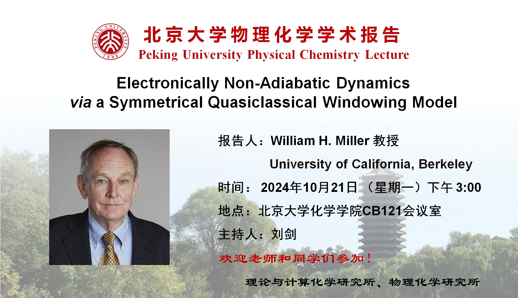 【北京大学物理化学学术报告】Electronically Non-Adiabatic Dynamics via a Symmetrical Quasiclassical Windowing Model