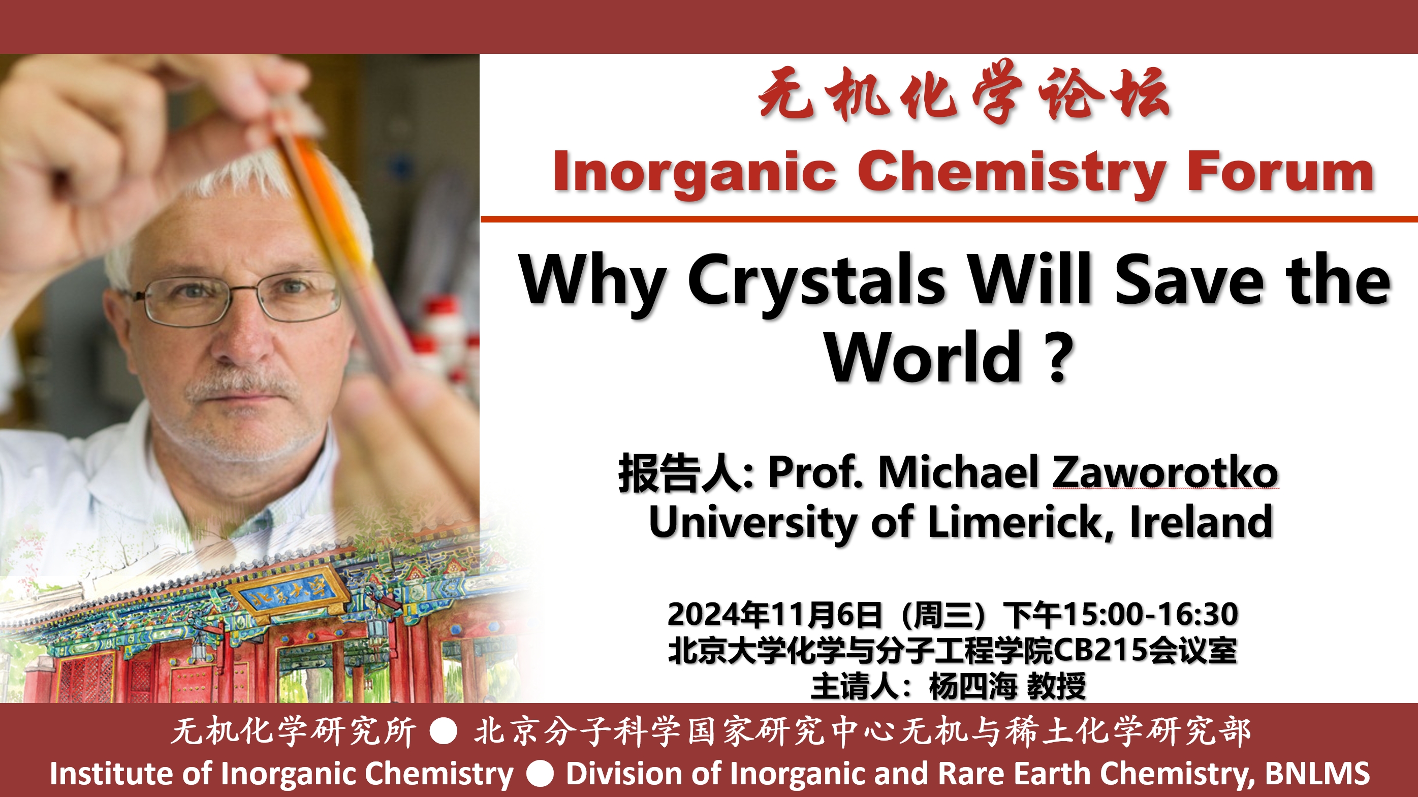 Dr. Mike Zaworotko was born in Wales in 1956 and received his B.Sc. and Ph.D. degrees from Imperial College (1977) and the University of Alabama (1982), respectively. He served as a faculty member at Saint Mary’s University (1985-1998), University of Winnipeg (1998-99), both in Canada, and at the University of South Florida, USA, (1999-2013). In 2013, he joined the University of Limerick, Ireland, where he currently serves as Bernal Chair of Crystal Engineering and was Co-Director of the SSPC from 2017-2022, www.sspc.ie.