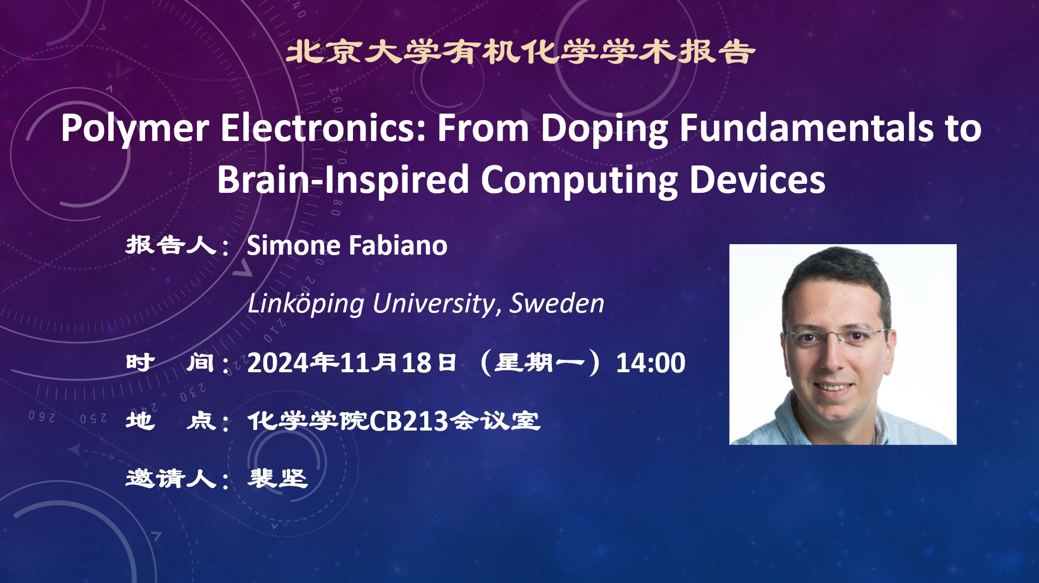 Simone Fabiano is an associate professor of material science and a docent in applied physics at Linköping University, Sweden. He obtained his PhD in Chemistry from the University of Palermo in 2012. During his doctoral studies, he was a visiting scholar at the Zernike Institute for Advanced Materials of the University of Groningen, The Netherlands. He then held postdoctoral positions at both Linköping University (2012-2015) and Northwestern University (2016-2017) before returning to Linköping University to establish his research group. In 2020, he founded n-Ink AB, a spinout company that focuses on developing n-type organic conductive inks, where he serves as the Chief Scientific Officer. His research group at Linköping University primarily focuses on developing novel doping strategies and organic mixed ionic-electronic conductors for printed electronics and neuromorphic hardware applications. He has received several awards, including the VR Starting Grant (2017) and Consolidator Grant (2023), the Wallenberg Academy Fellow Award (2021), and the ERC Consolidator Grant (2023).