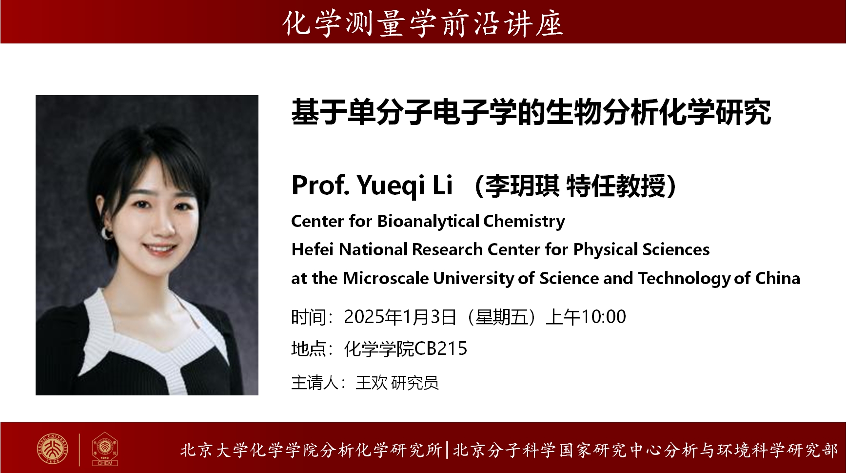 李玥琪,中国科学技术大学特任教授,博士生导师。2012年于中山大学获化学学士学位;2017年于美国亚利桑那州立大学获博士学位,2017-2020年先后于亚利桑那州立大学(合作导师:Nongjian Tao)和威斯康辛大学麦迪逊分校(合作导师:Edwin Chapman)从事博士后研究;2021年至今于中国科学技术大学-合肥微尺度物质科学国家研究中心任特任教授。 主要研究方向为:1)单分子电化学分析,2)单分子之间弱相互作用的解析,3)生物活性体系的多模态单分子检测,4)单分子器件的研发,5)单分子内量子行为的检测与分析。在Nature Materials, Nature Communications, PNAS, JACS等学术期刊发表系列论文。